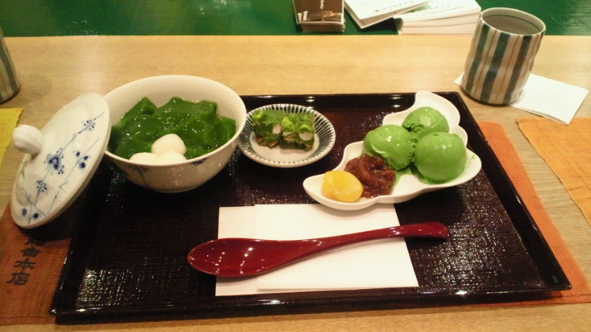 それから、京都駅に戻り(市バスで)お土産を購入後、中村藤吉郎のお店で念願の抹茶スイーツを食しまして!